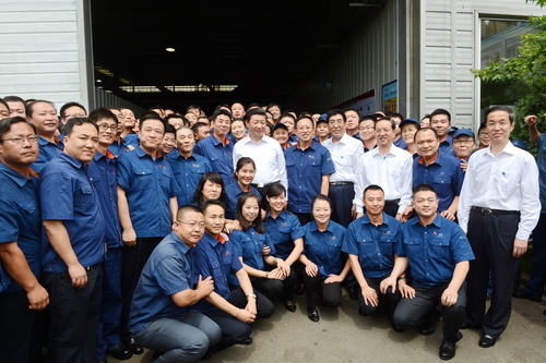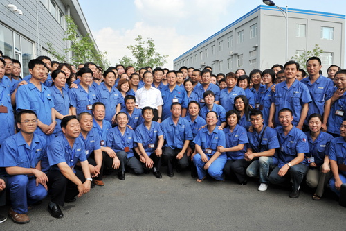 2009年7月26日,時任國務院總理溫家寶親切平蒞臨東光集團視察與員工親切合影
